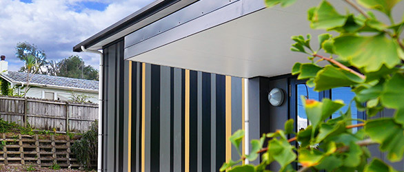 100mm wide, flat face panels. Each panel is one section wide and can be fitted horizontally or vertically for a modern, clean look. This product is popular on commercial buildings and residential complexes, or combined with other profiles for a unique look.
