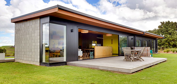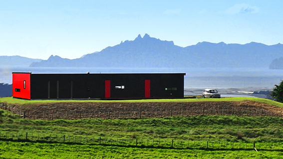 Being on such a unique site offered challenges, especially with Northland’s unpredictable seasonal climate. Architectural Designer Frank Stanton (Dream Planning Ltd) tackled this by keeping a minimalistic shape with simple but strong lines, which also ensured the structure would not overwhelm the surrounding environment. A dark colour tone was chosen for the Mono cladding to help ground the home visually and allow the feature red accents to shine.