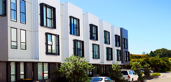Not only did Nu-Wall cladding provide a durable and weatherproof cladding, but its low maintenance enhances the easy living lifestyle that makes apartments particularly desirable. SS200’s contemporary standing seam enhances the overall look with its strong, architectural lines, while the simpler E200 quietly complements it. This locally made product is New Zealand’s leading recycled aluminium cladding, a key factor in a sustainable living environment.